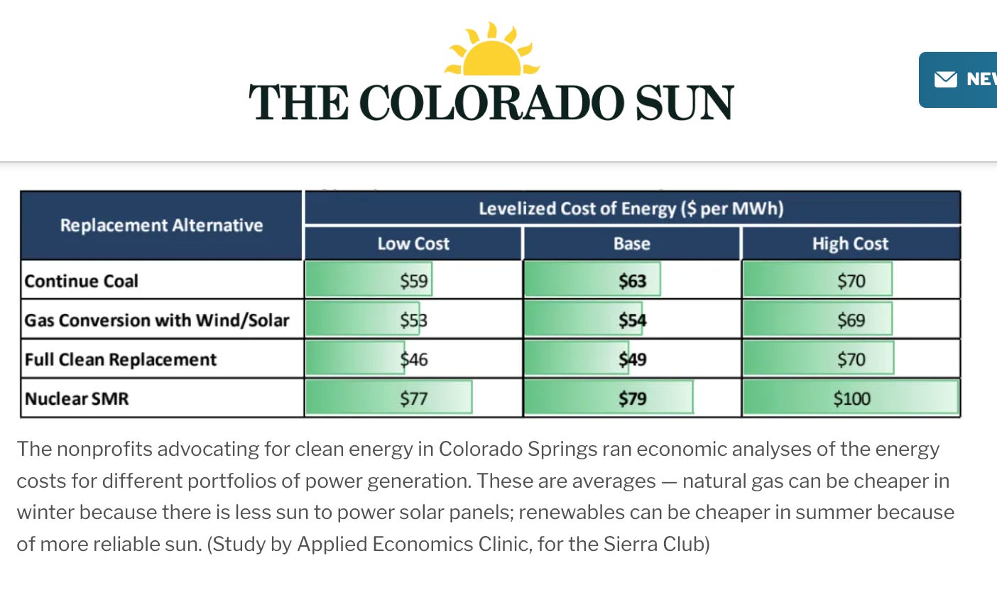 Instead, readers of the “independent” Colorado Sun last were treated to something else entirely: an uncritical amplification of a study commissioned by the Malthusian “Colorado chapter” of the Sierra Club claiming that keeping the Nixon coal plant open or exploring small modular nuclear reactors (SMRs) would be “the most expensive options by far.”